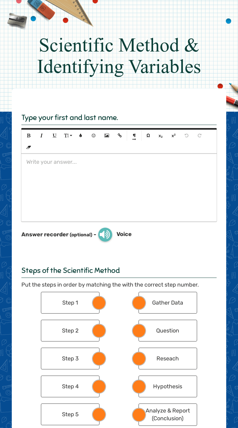 Formulating questions is a deep and meaningful activity that can give students ownership over their work. This lesson explores one important measure of the quality of a scientific experiment: Practice designing controlled experiments and using the scientific method. Your introduction statement can guide you in identifying the specific contribution of your study. Other variables in the experiment should remain the same, because if you change more than one variable, you will not know which variable explained your results.